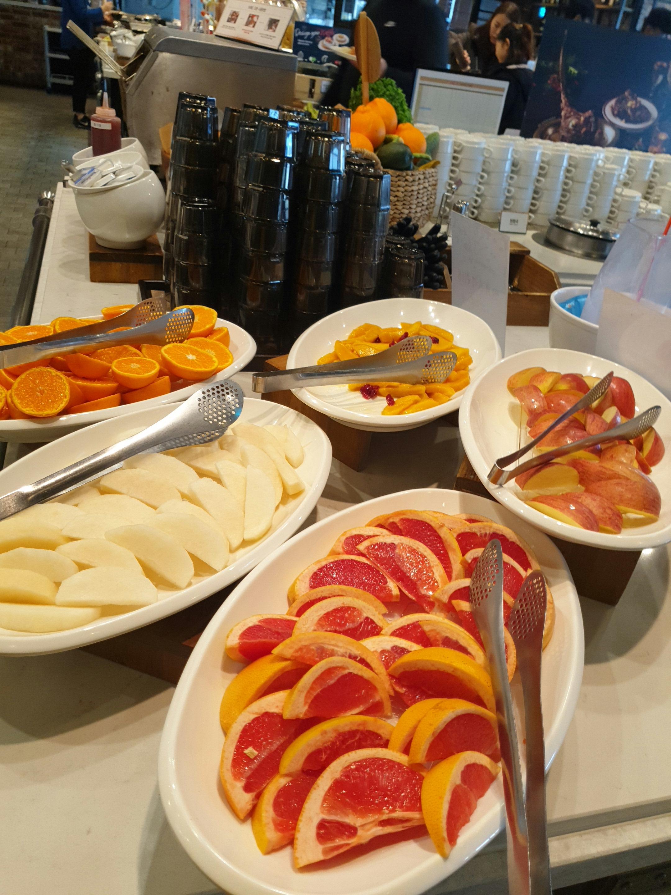 저는 채소와 피자랑 빵부터 먹었는데 빵도 너무 고소하고 빵에 샐러드를 얹혔더니 브런치 카페에서 먹던 그맛이 나오더라구요. 역시 분기별로 가야하나봐요.