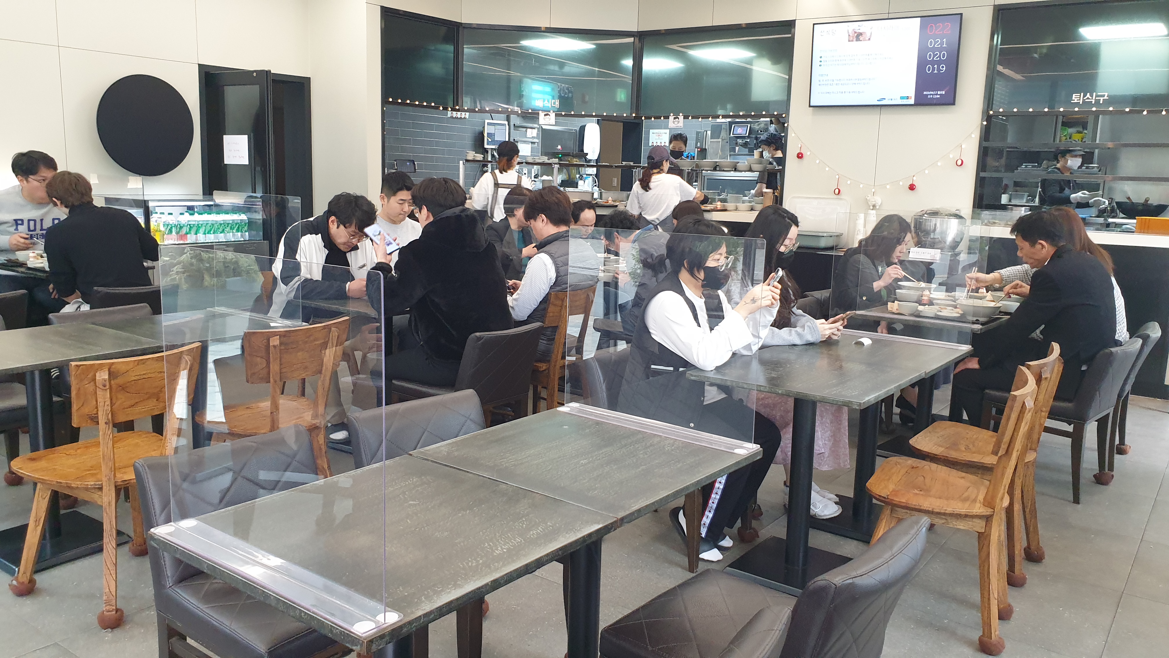 기본 방역수칙 장비는 있지만 많이 풀려 하는사람들은 드물어요. 주문도 입구에서 기계로 주문해 번호표가 나오면 받는형식이예요.